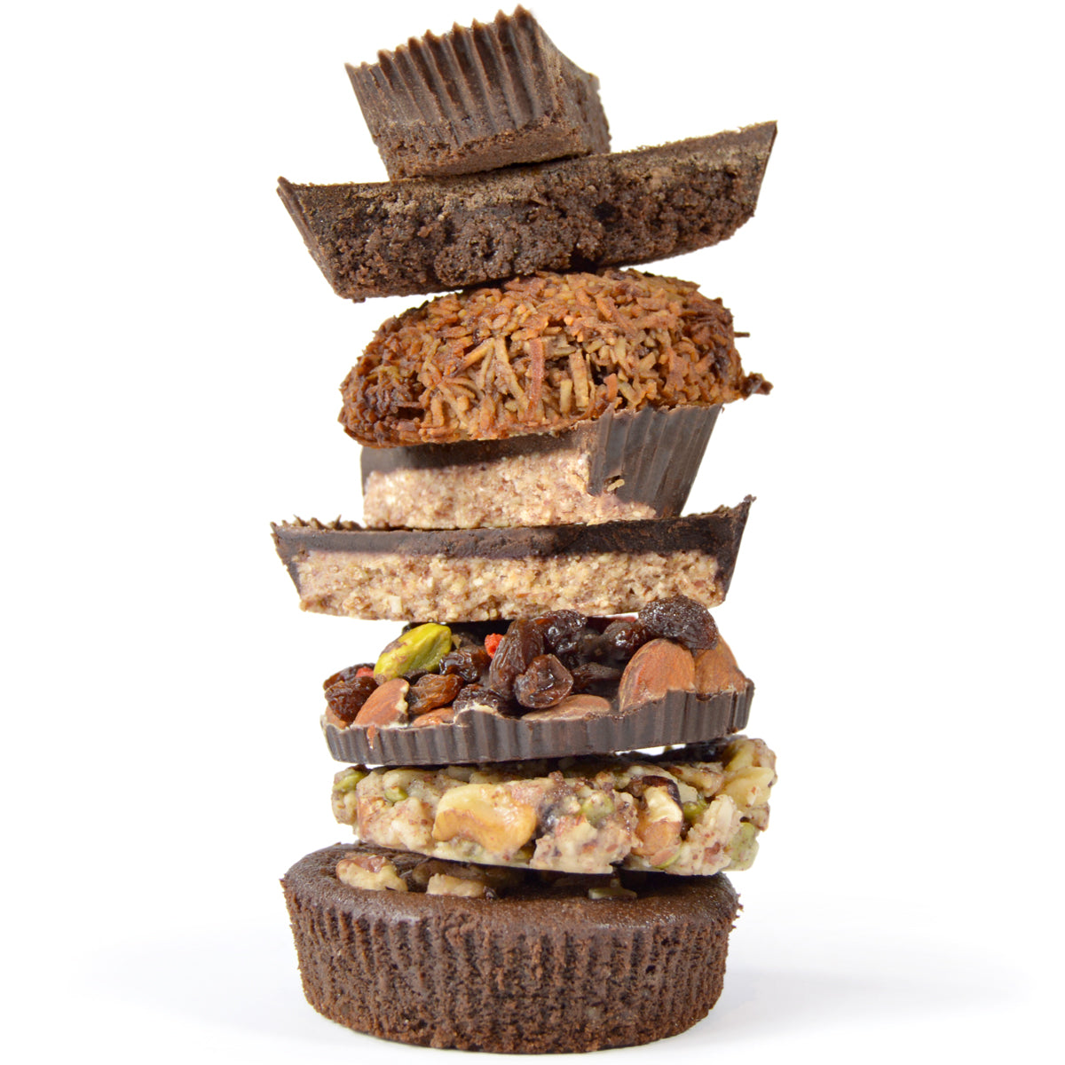 INGREDIENTS: almond flour, roasted almond butter, coconut oil, honey, cacao butter, flax meal, dried unsweetened coconut, cacao powder, vanilla extract, sea salt